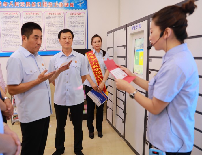 当日上午,与会法官参观了北安市人民法院“从延安到北安”红色主题文化长廊和诉讼服务中心。在“从延安到北安”展区,与会法官接受了一次“红色”洗礼;在在诉讼服务中心,曲民同志体验了“智能云柜”文件存取功能。