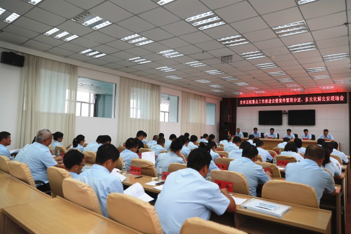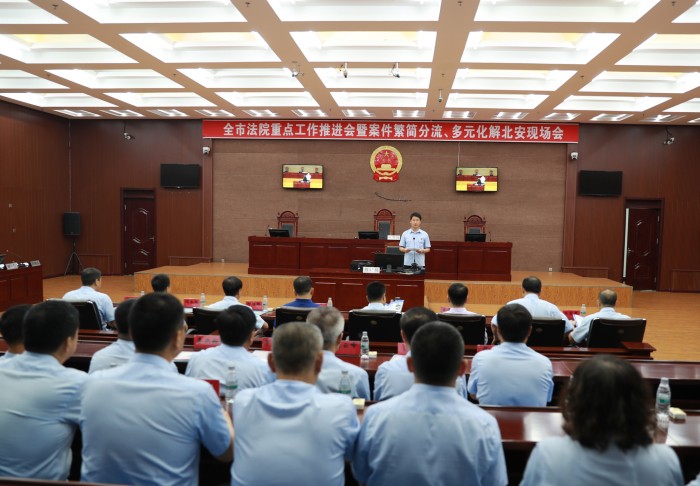 7月12日,全市法院重点工作推进会暨案件繁简分流、多元化解现场会议在北安市召开。市中级法院党组书记、院长曲民等来自全市两级法院的70余名法官汇聚北安研讨审判、执行攻坚和司法改革。中共北安市委书记黄士伟、政法委书记肖玉柱等领导出席会议。
